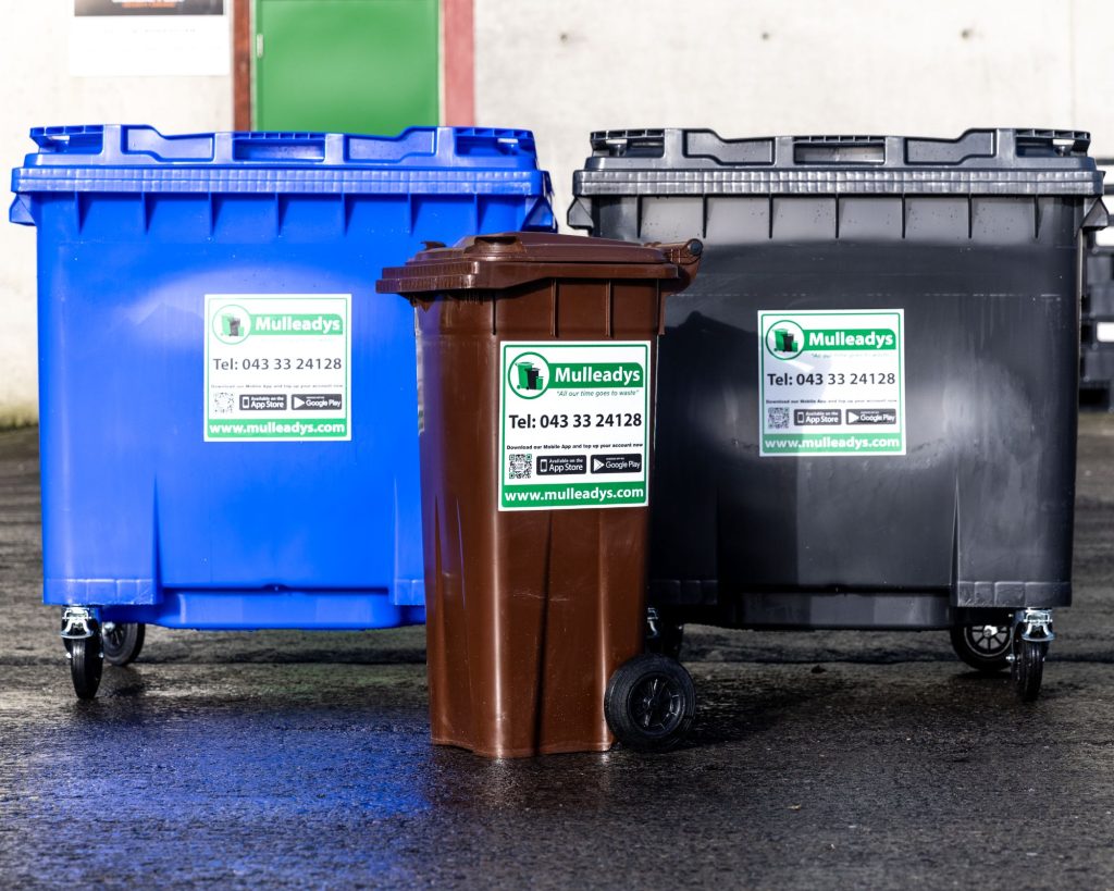• All waste collected is weighed, with details on the weights of the individual bins communicated to customers. Mulleady’s Ltd provide variety of Wheelie Bins in different sizes from 140 Ltr, 240 Ltr, 360 Ltr, 660 Ltr and 1100 Ltr.