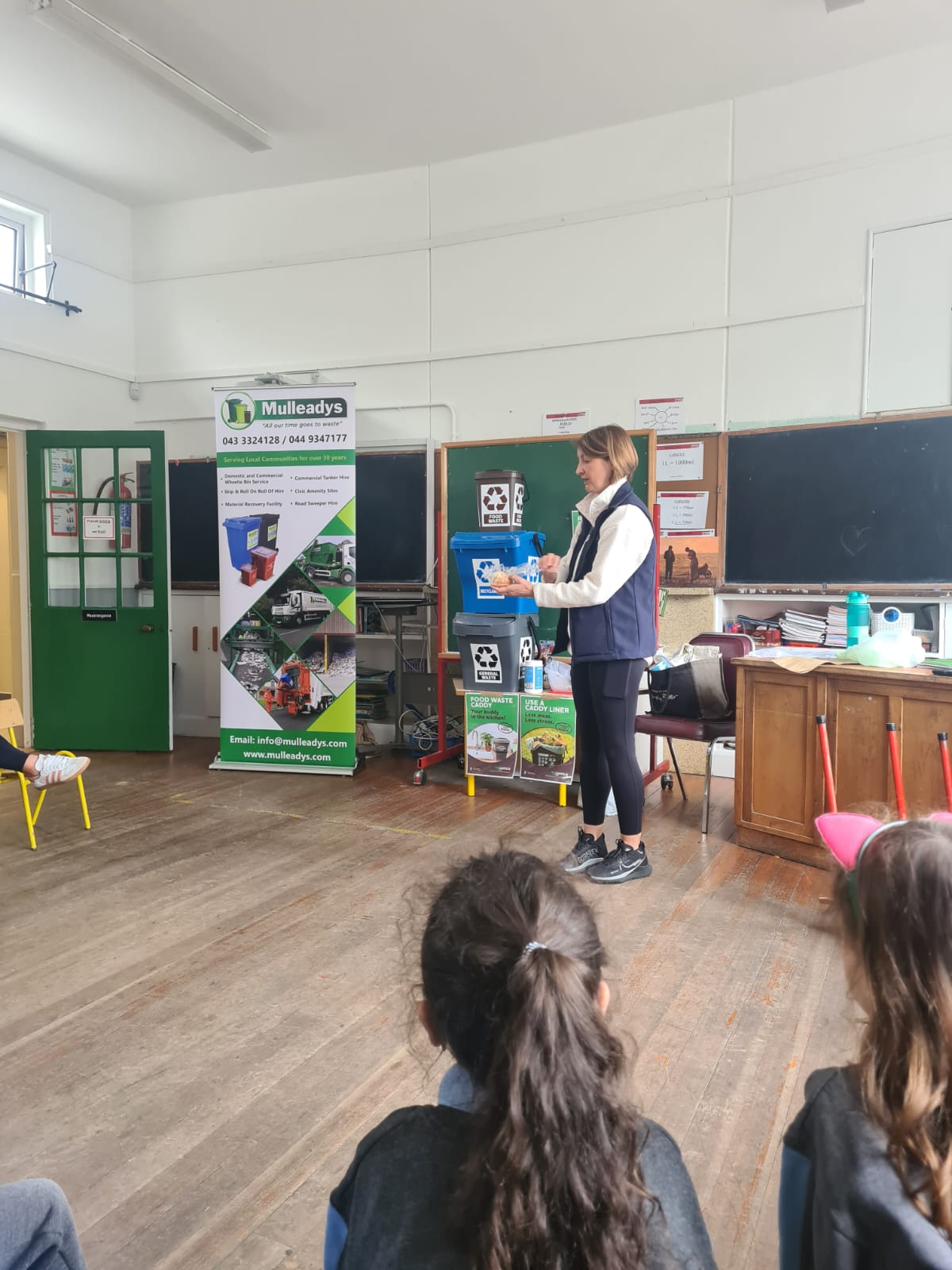 The talks have been very well received by the children and teachers. Drumlish N.S Principal after the workshop said: “Team from Mulleady’s called to our school to help us manage our waste bills and recycling in our school. We were very impressed with the practical tips that Ludmila gave us. The staff were given information for additional classes on recycling and each class participated in a practical session where everyday items were sorted and placed in the appropriate bin. The information was clear, age appropriate and excellently delivered in a professional manner. I have no hesitation in encouraging other schools to invite the education team from Mulleadys to visit their school. Super initiative!” The workshop likewise fits in well with the Green Schools Ireland programme that is being run in many schools.